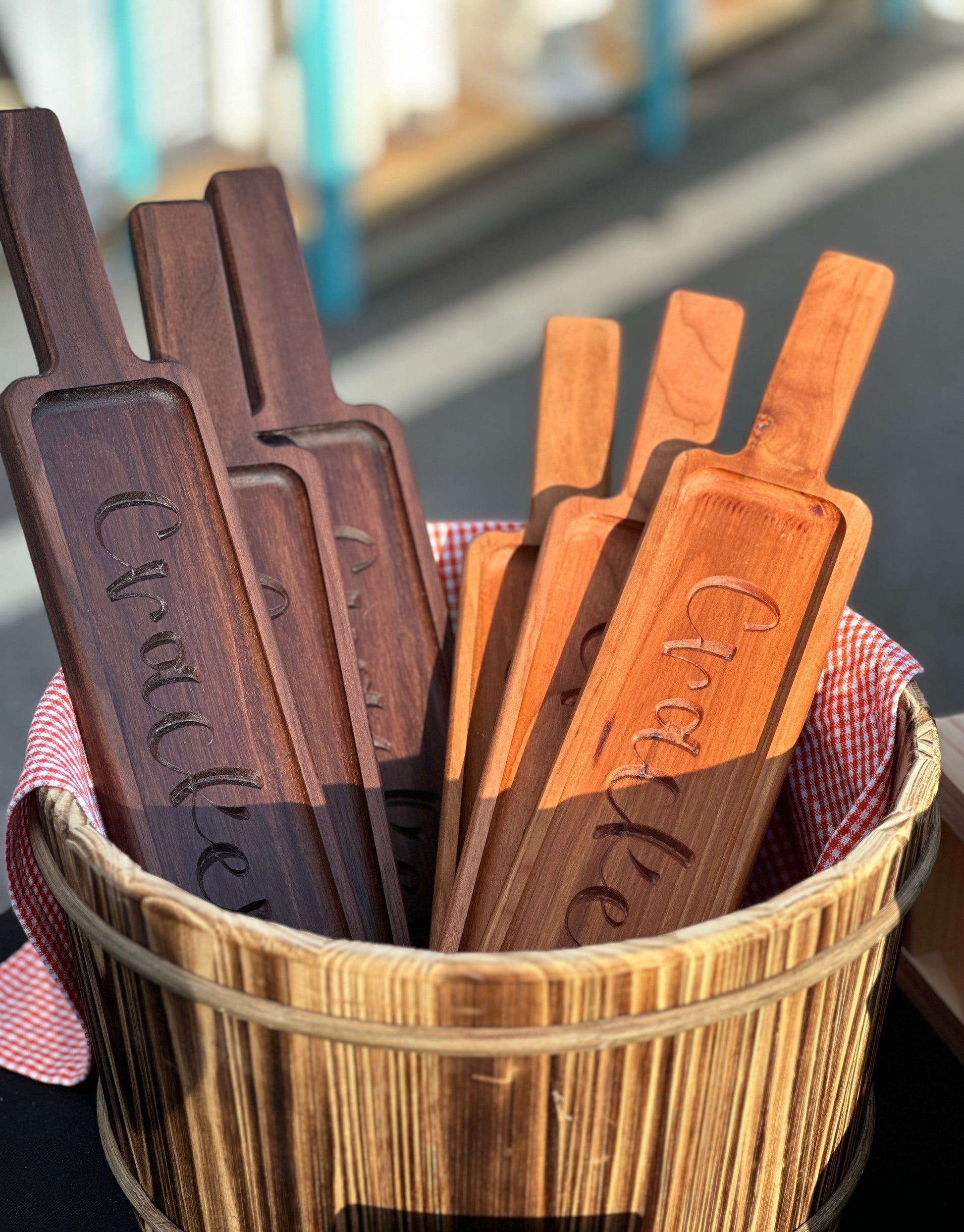 This beautiful, handmade hardwood cheese and cracker tray is a perfect compliment to your charcuterie board or cheese slicer. Perfect for holidays, get togethers, or just because. You can even add a little extra special touch with a custom laser engraved name, monogram, or saying!