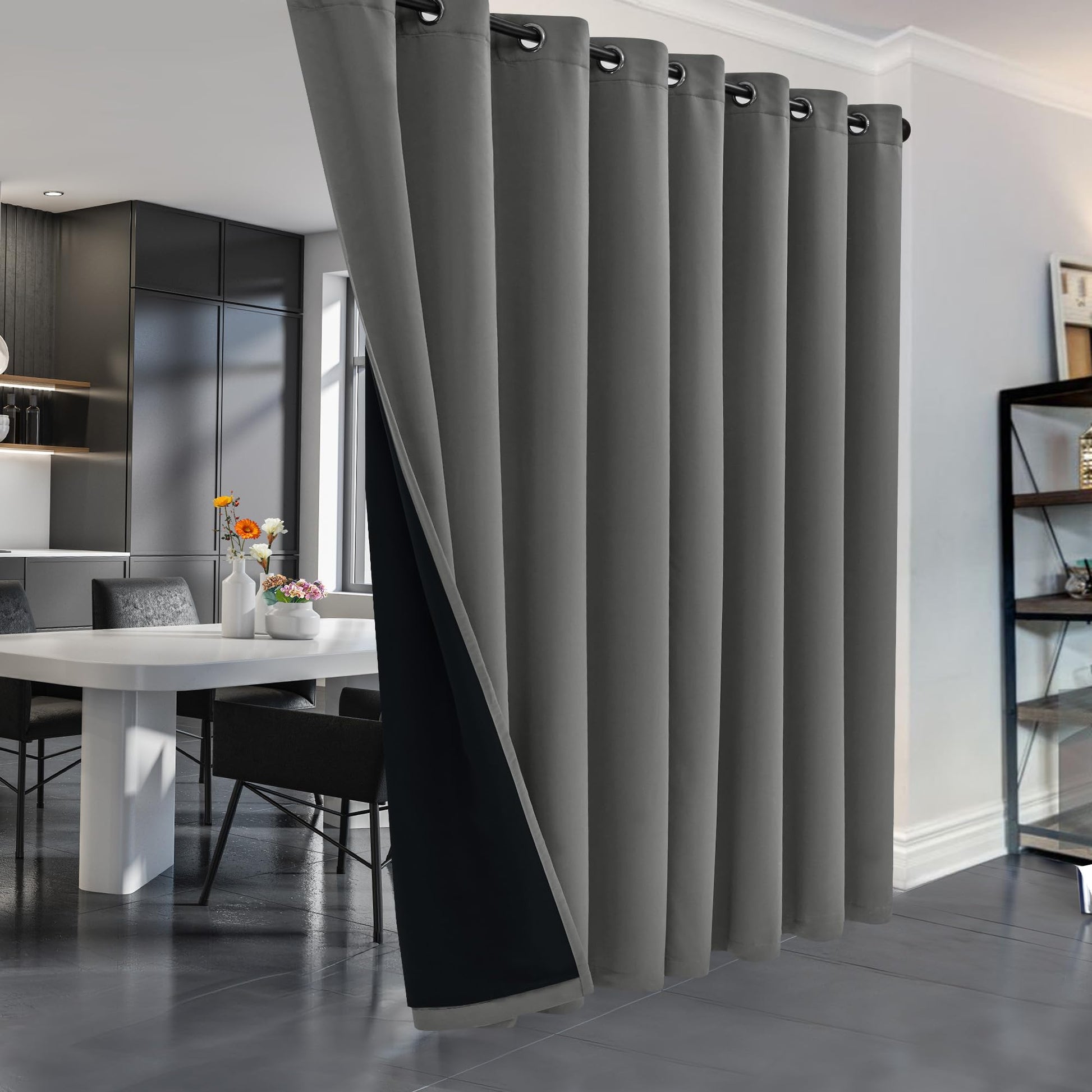 Modern Design: Smooth texture with silver grommets (1.6¡± inner diameter) adds elegance and ease of installation.