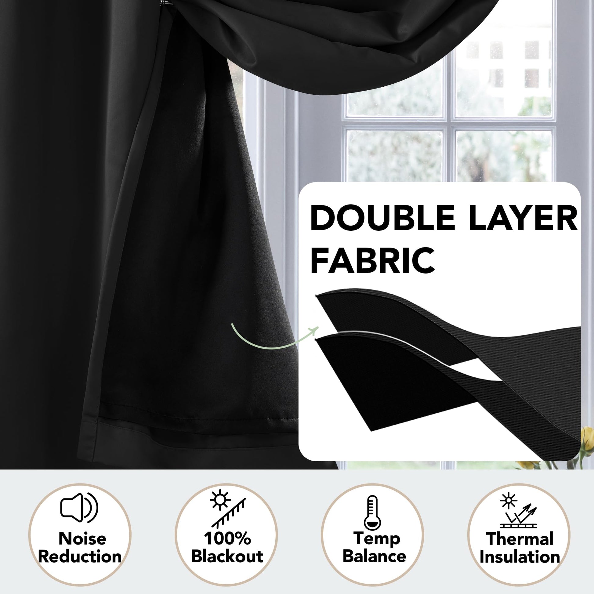 Soundproofing: Heavyweight, double-layer fabric absorbs noise, creating a peaceful environment.