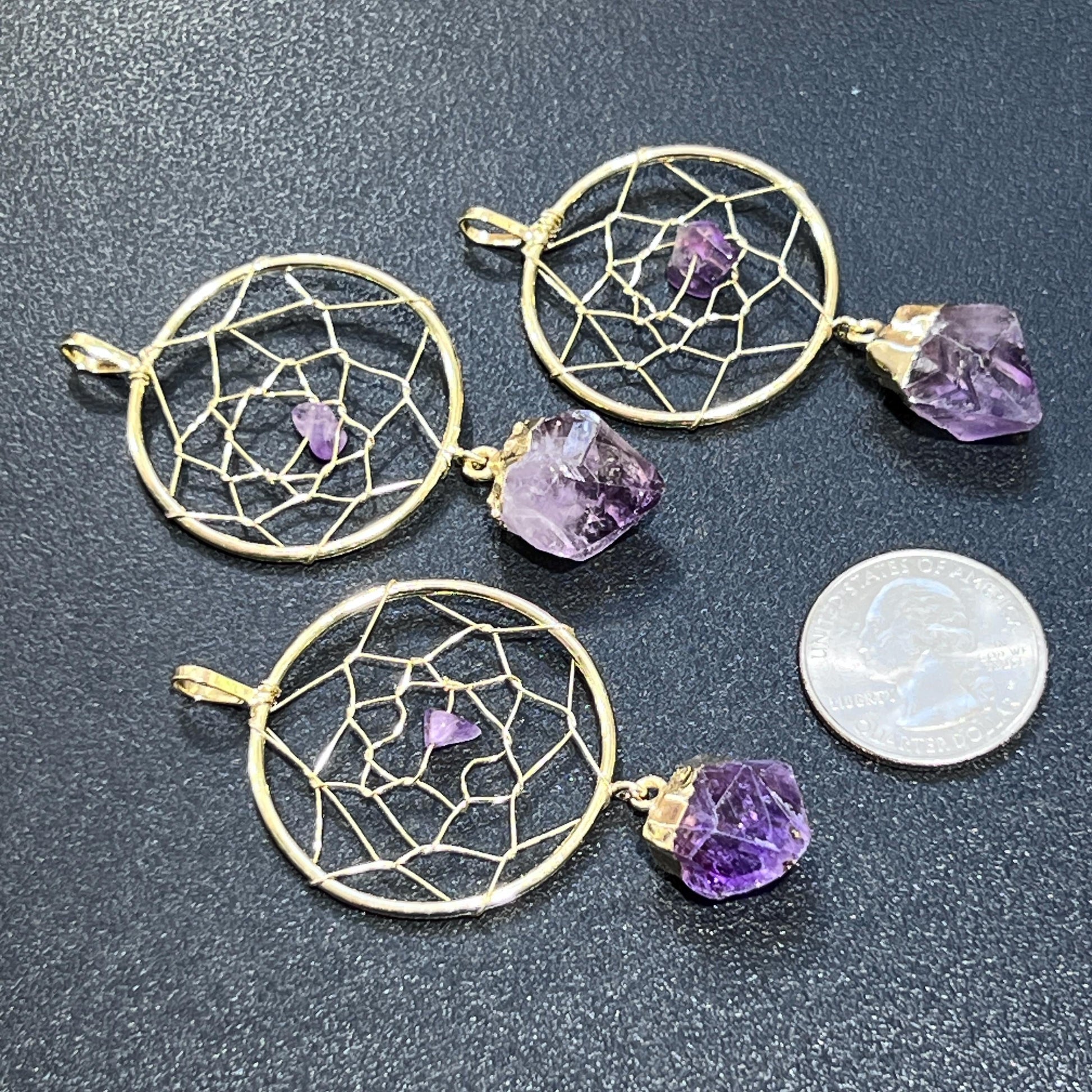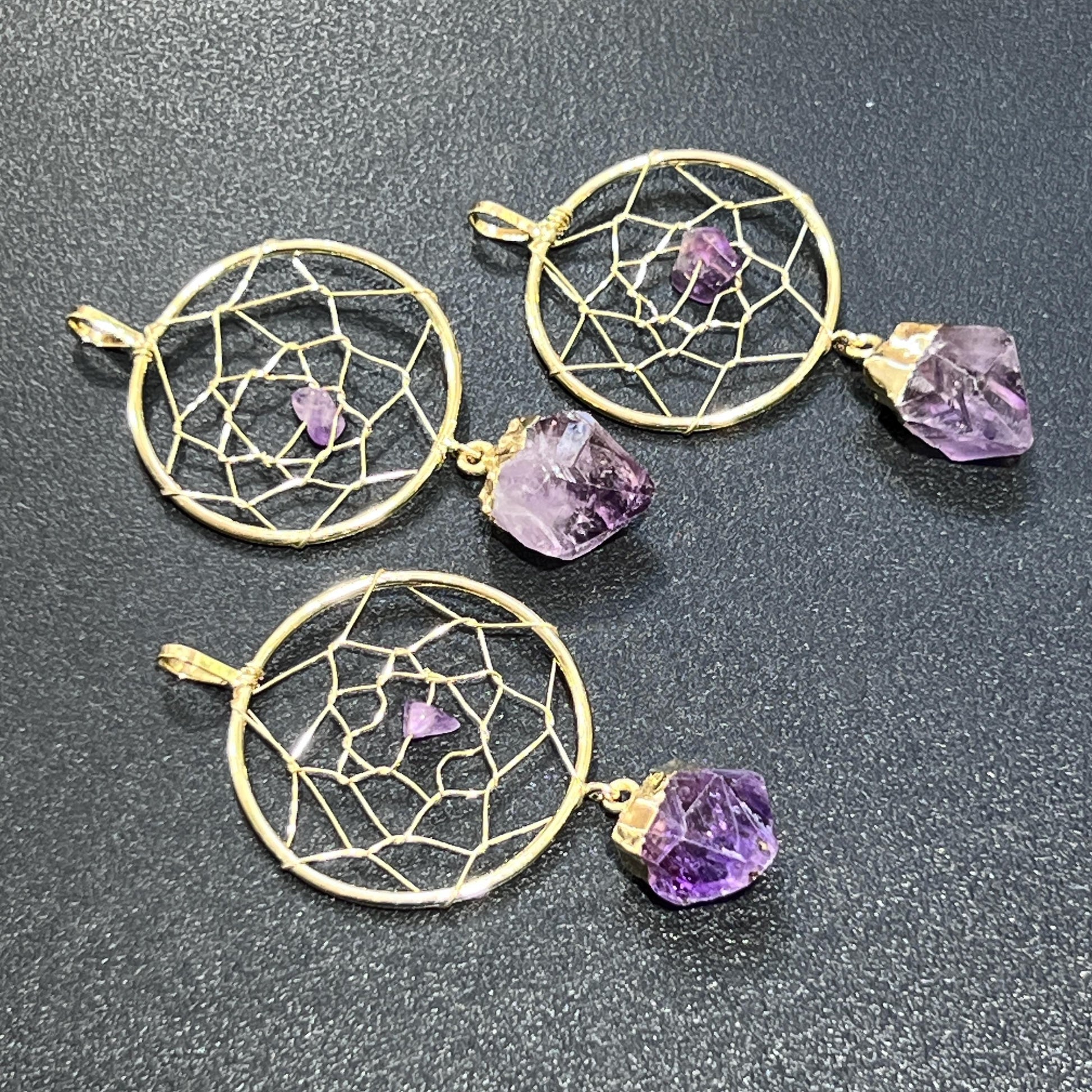 Amethyst Dream Catcher Pendant Crystal Point (Gold Plated)