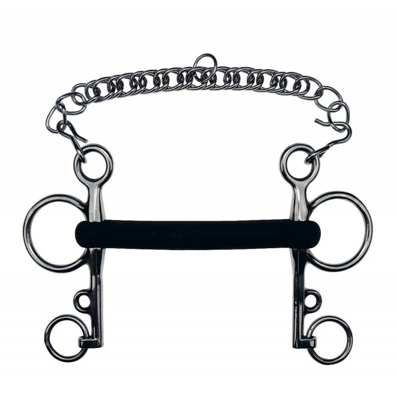 Stainless steel. Rubber covered mullen thick mouthpiece.