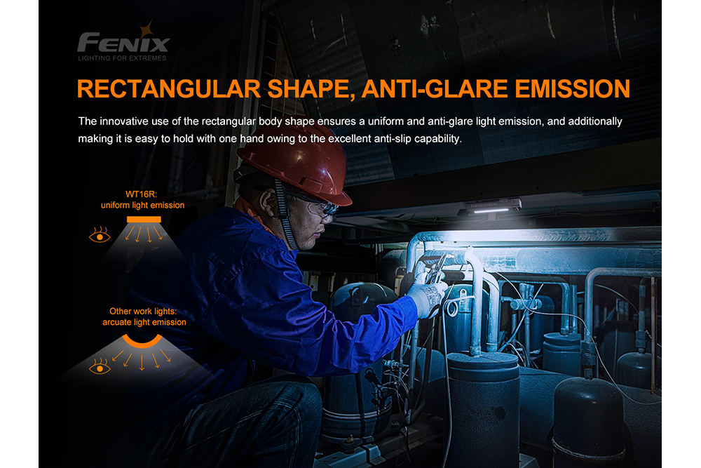 The Fenix WT16R is a cutting-edge rechargeable work light that emits up to 300 lumens. It is equipped with three lighting functions: spotlight, floodlight, and yellow flash. It also has a side light and a magnetic back which allows for multiple positioning options. The WT16R is suitable for industrial use and is conveniently attachable to almost any metal surface for hands-free operation. With a maximum beam visibility of 377 feet and an IP66 water resistance rating, the WT16R is powered by a 2000 mAh Li-polymer battery that can be charged using a USB Type-C Charging port. Get the Fenix WT16R now!