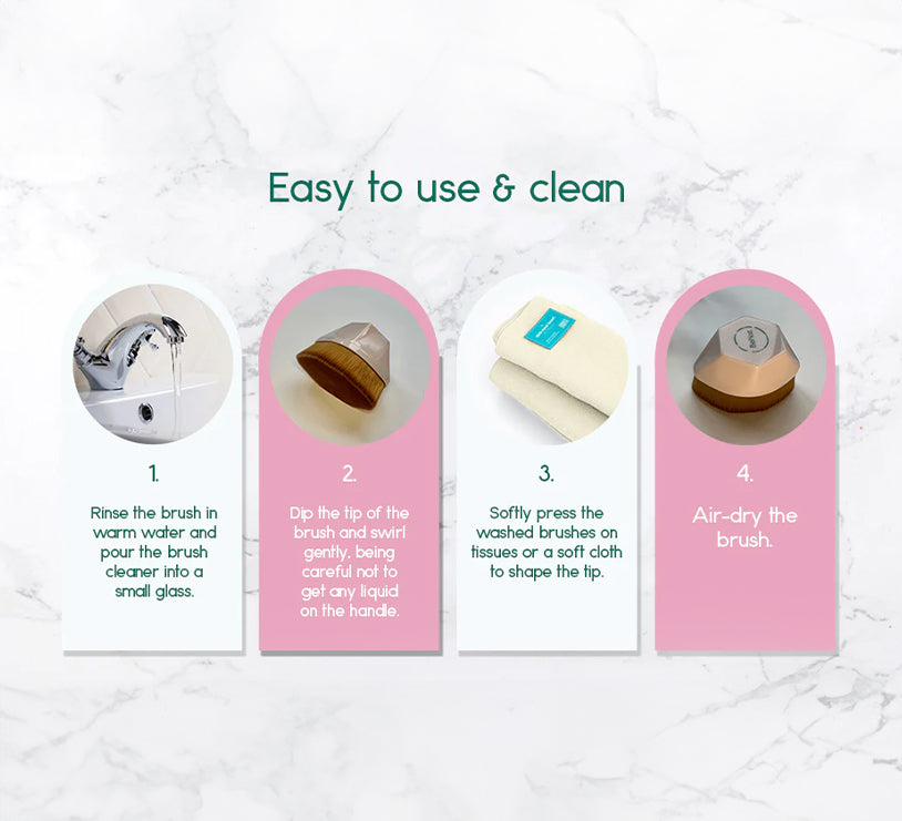 - Rinse the brush in warm water and pour the brush cleaner into a small glass.