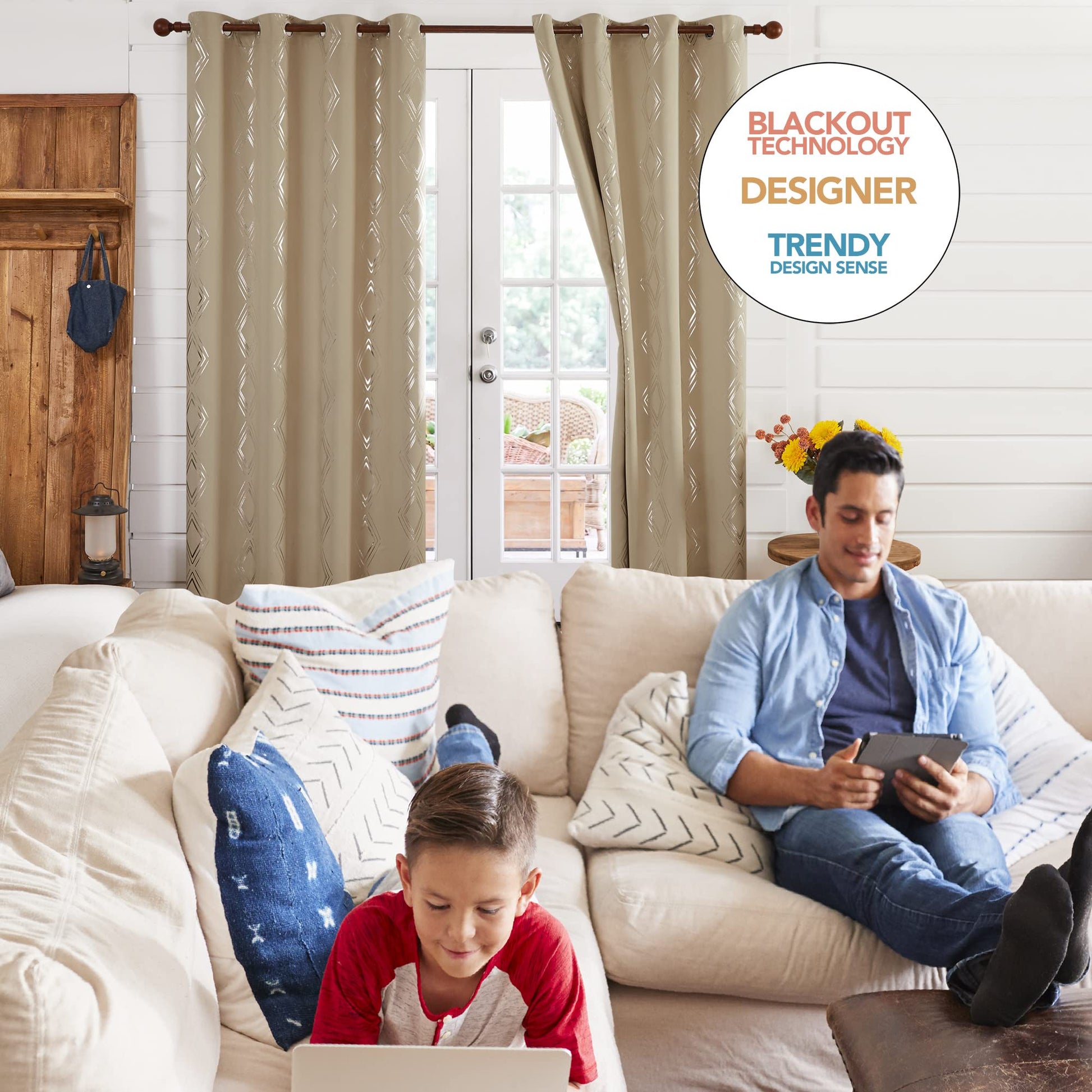 Geometric Blackout Curtains, Taupe, 52x108 Inch, 2 Panels