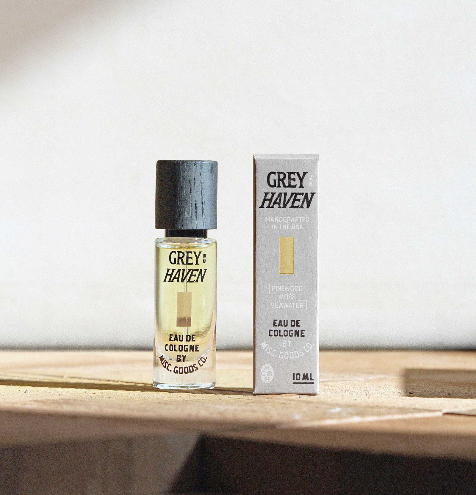 Greyhaven opens with brisk seawater and pinewood, softens into cedar moss, and finishes with the brightness of white wine and herbs. It’s clean but grounded, fresh but familiar — made to wear like a second skin.