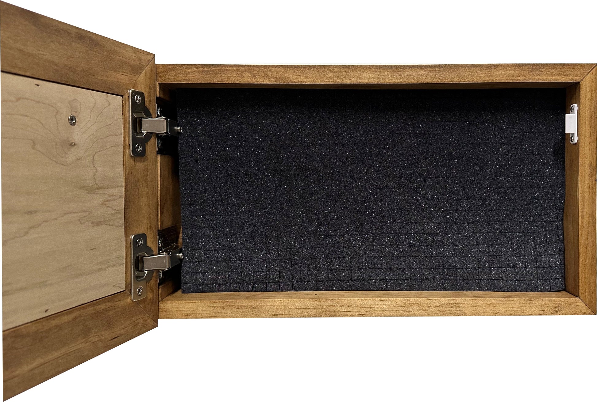 Securely store all of your home self defense gear in this Bellewood Designs Outdoor Stream and Eagle scenery locking cabinet. Made from solid wood this decorative gun cabinet features a three dimensional outdoor nature scene with a stream and eagle flying high above. The gun safe allows you to securely store your firearm and other tactical gear while keeping them quickly accessible when you need them. No one would ever think that your home self defense gear is securely store in this beautiful gun safe.
