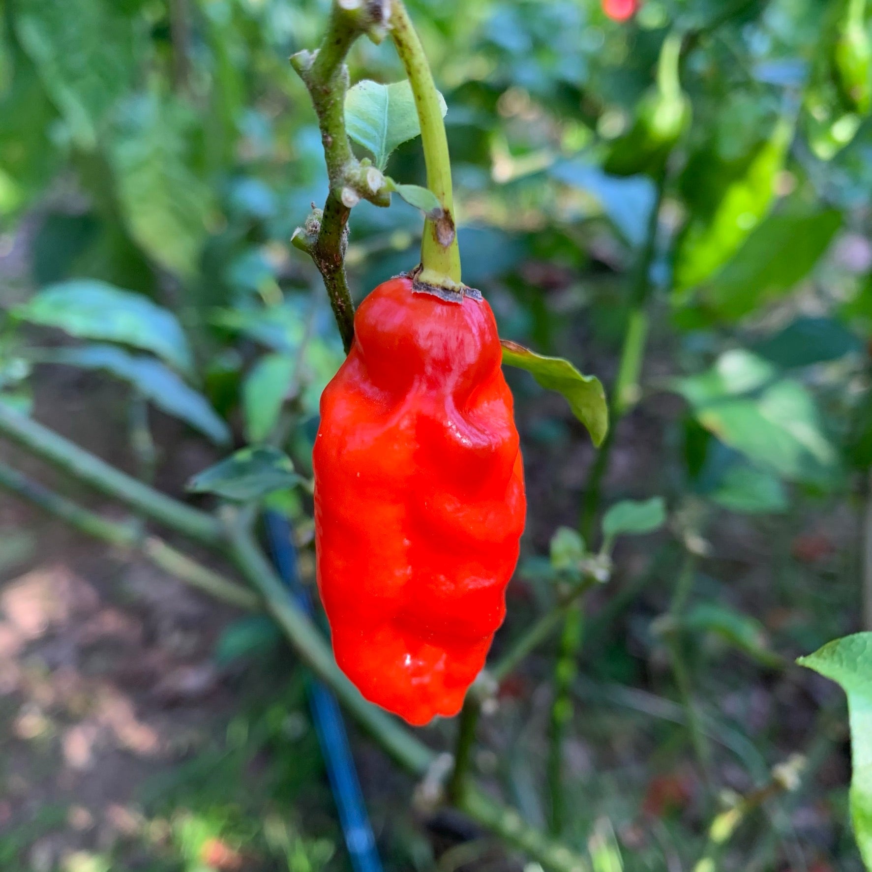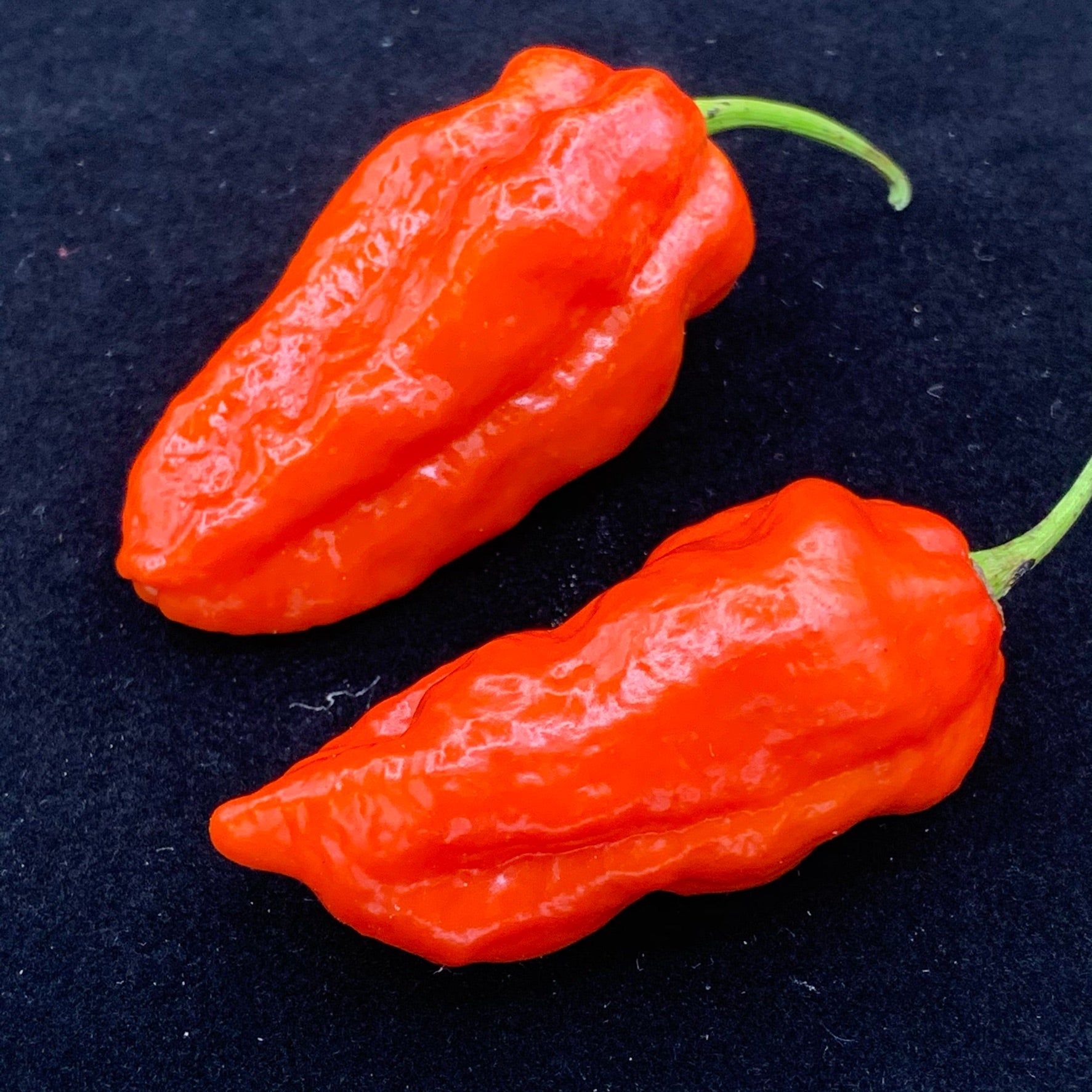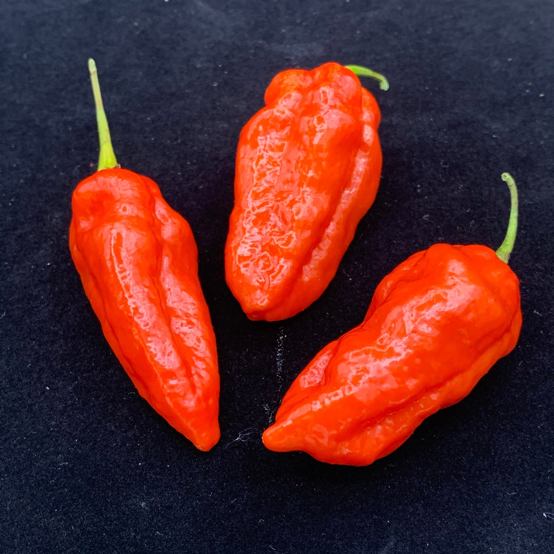 The Komodo Dragon chili, introduced in 2015 and sold at Tesco in the UK, was created by Salvatore Genovese. This fiery pepper delivers a deceptive experience—first offering a burst of fruity, rich flavor before unleashing its intense heat after a 10-second delay. The plants are highly productive, reaching 3-4 feet tall and producing 1.5-2.5 inch peppers that ripen from green to deep red. A true beast in both taste and heat!