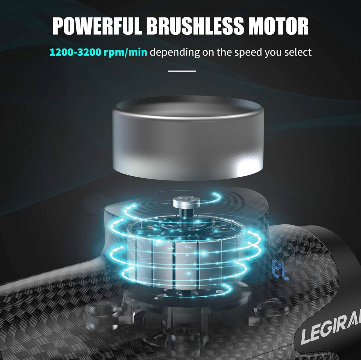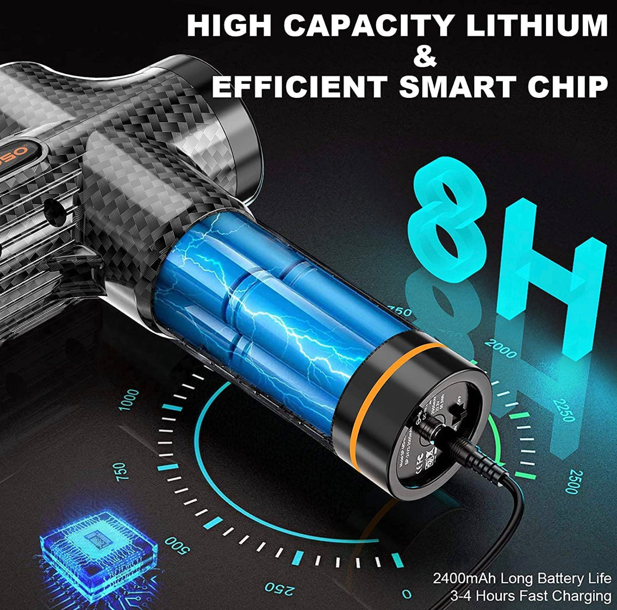 Massage Gun for Athletes, Portable Fiber Carbon Massager Gun with 6 Massage Heads 20 Speed