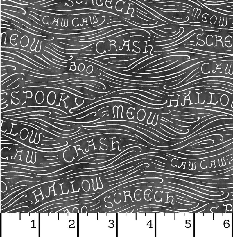 Maywood Studio Halloween Spooky Hollow Wavy Text on Black 100% Cotton By the Yard
