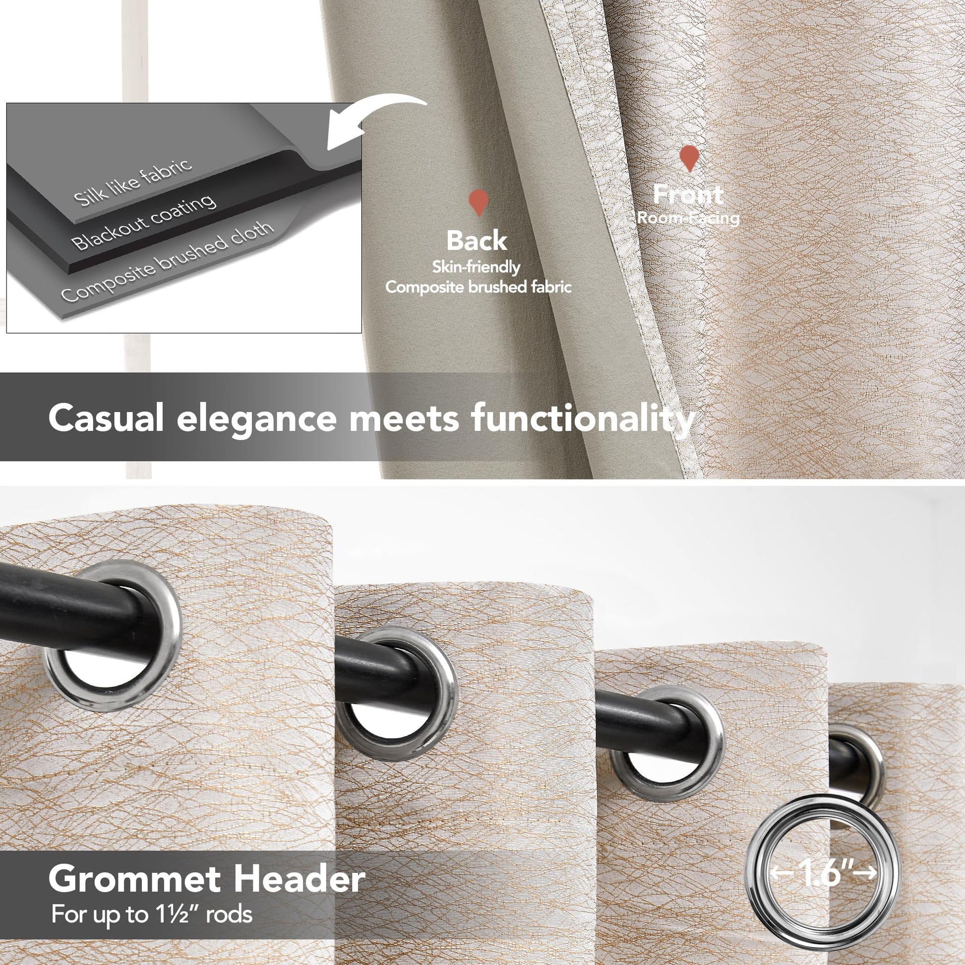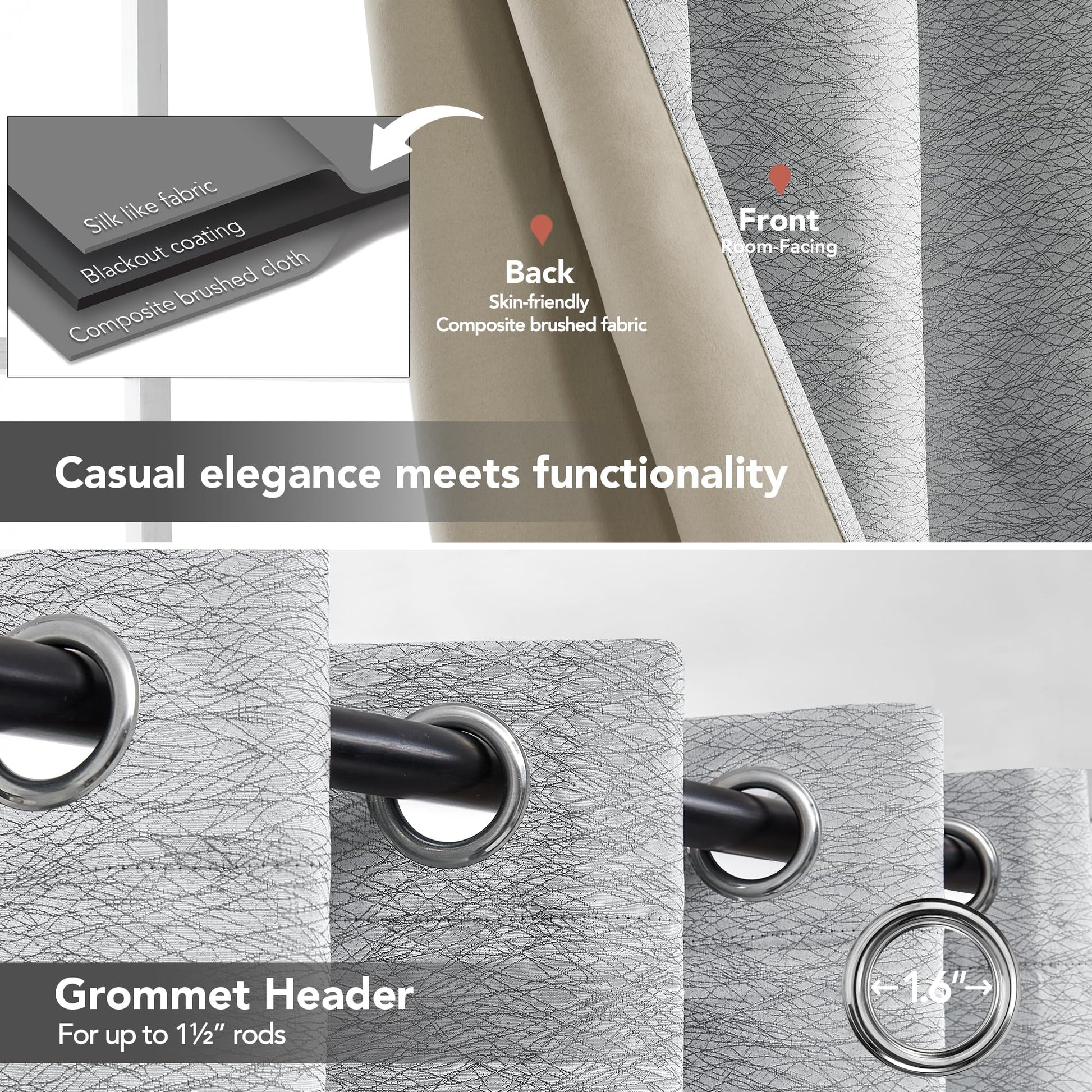 100% Blackout: Double-sided blackout coating with triple-woven composite jacquard fabric blocks 100% of light.