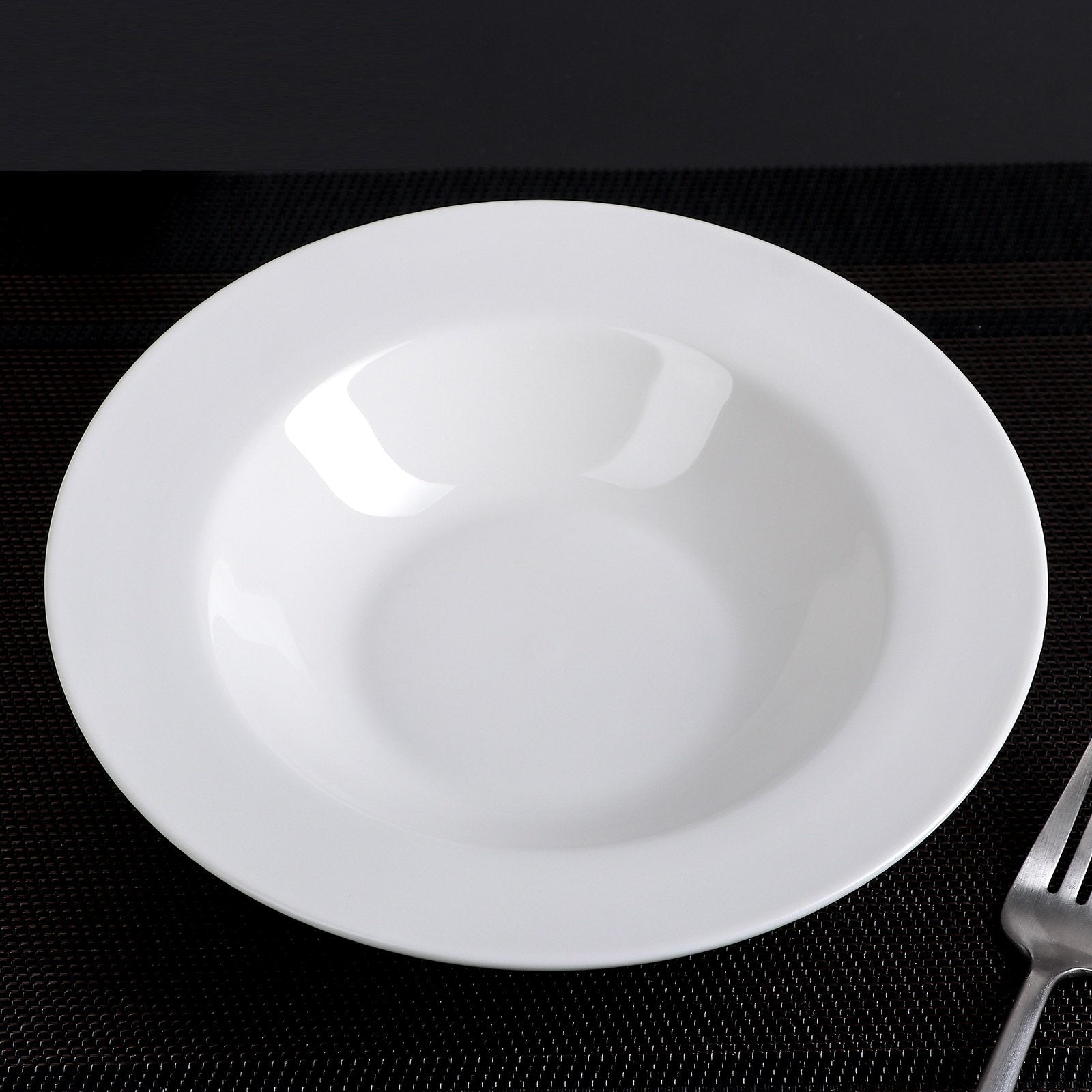 Professional Plate, 8 oz. (250 ml), 8" (20-1/2 cm), deep, rolled rim, dishwasher/microwave safe, ovenproof (up to 572°F/300°C), fully vitrified, fine porcelain, white.