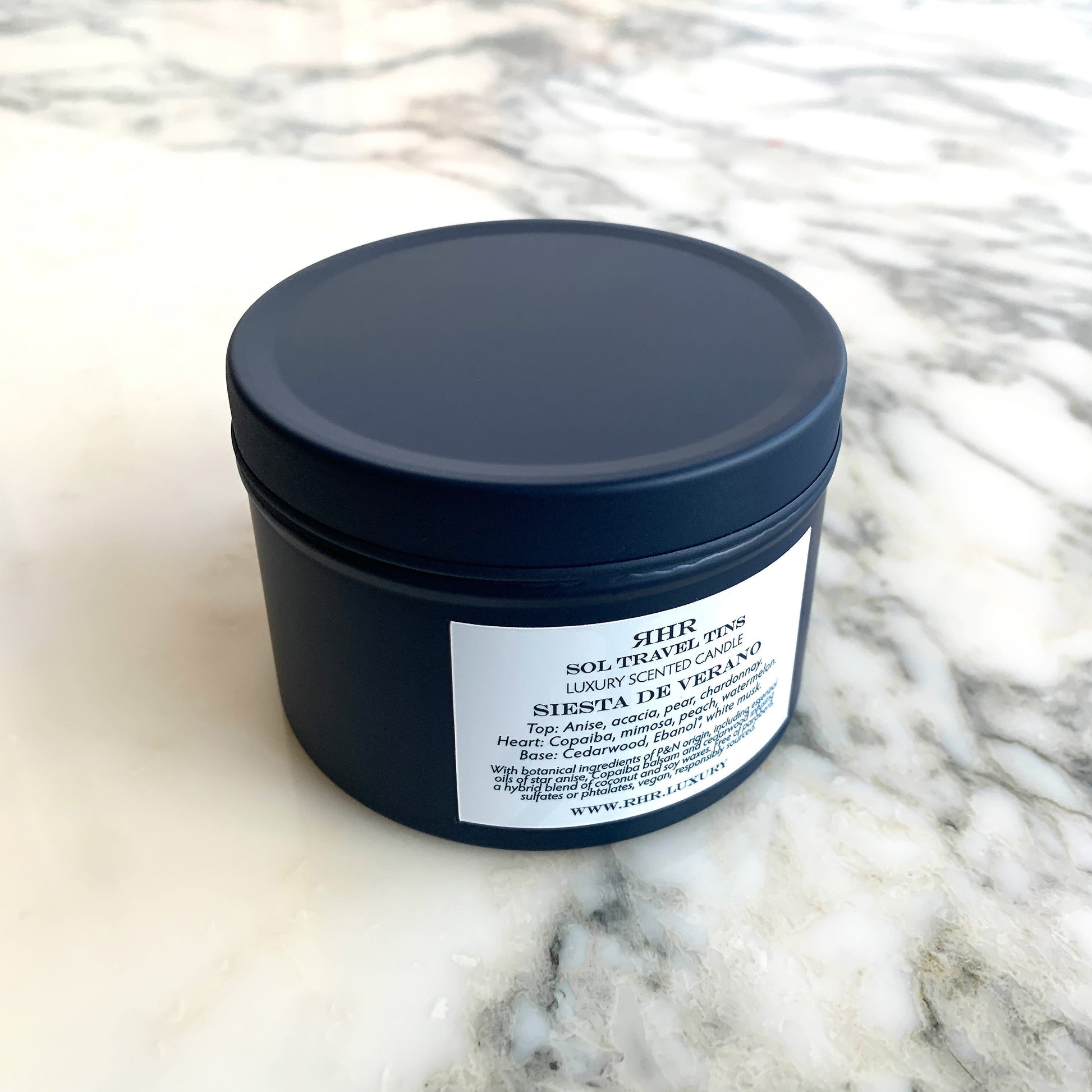 Siesta, Spanish for "nap", Verano, Spanish for "summer". Inspired by summer siestas and the bounty of summer, our Siesta de Verano candle is a casual rendition of our Siesta Luxury Scented Candle 12.75 Oz. With juicy pear, peach and watermelon accords decorating acacia and mimosa, it provides outstanding diffusion thanks to a base of cedarwood essential oil, sandalwood and white musk accords.