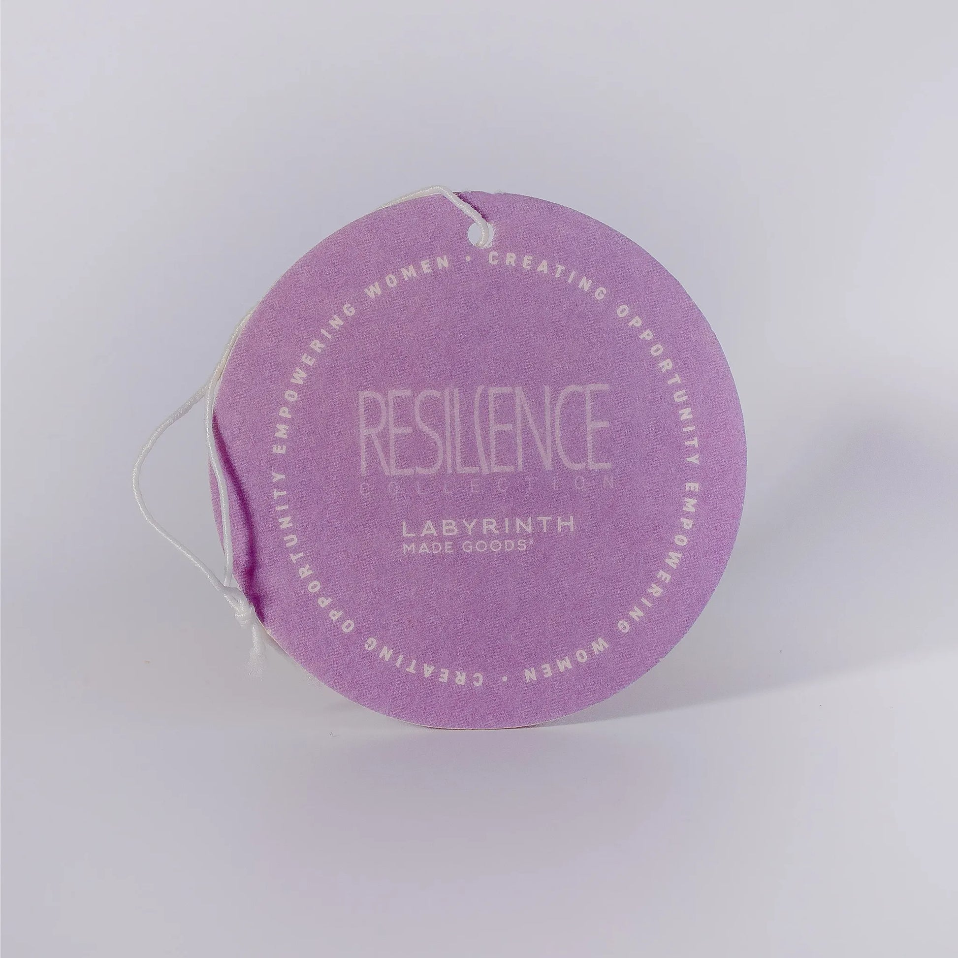 Our large Solidarity candle is filled in a beautiful, custom glass vessel with the word "Resilience" wrapped around to honor the resilience we can find within ourselves. Each of the larger candles has an estimated 60-hour burn time and a net weight of 11oz.