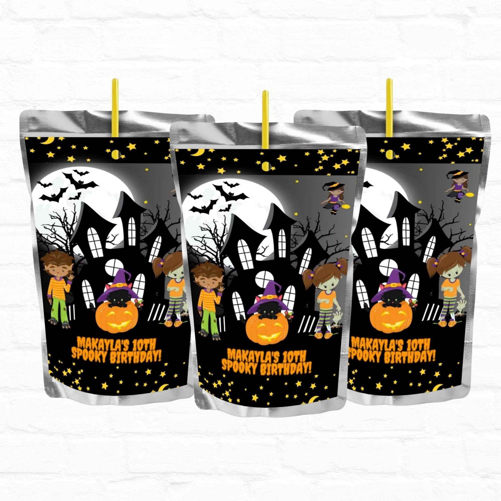 Spooky Halloween Birthday Party Favor Personalized Juice Pouch Labels | Printable File