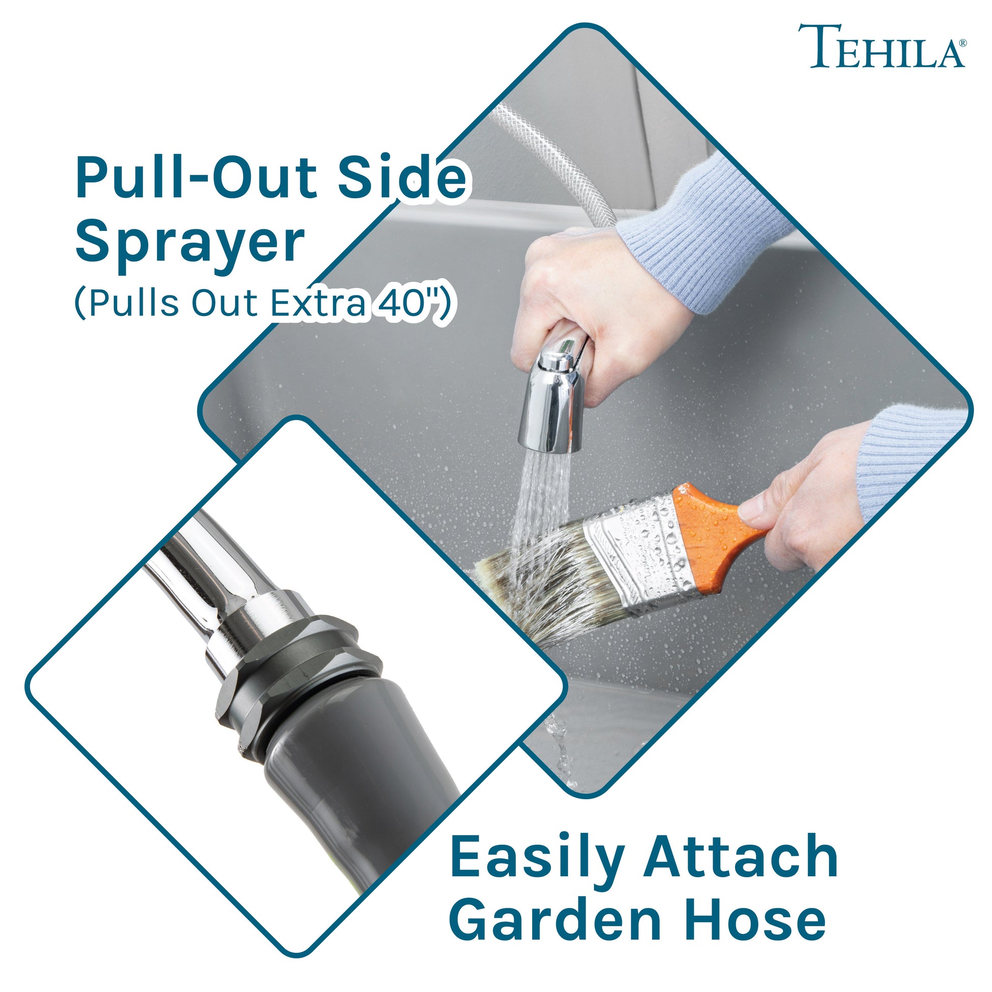 Our gooseneck faucet comes with a sprayer attachment to make cleaning a breeze. The retractable sprayer gives you control and precision when rinsing tools or cleaning hard-to-reach areas. The faucet is also threaded so you can easily attach a garden hose to rinse off muddy shoes or water plants.