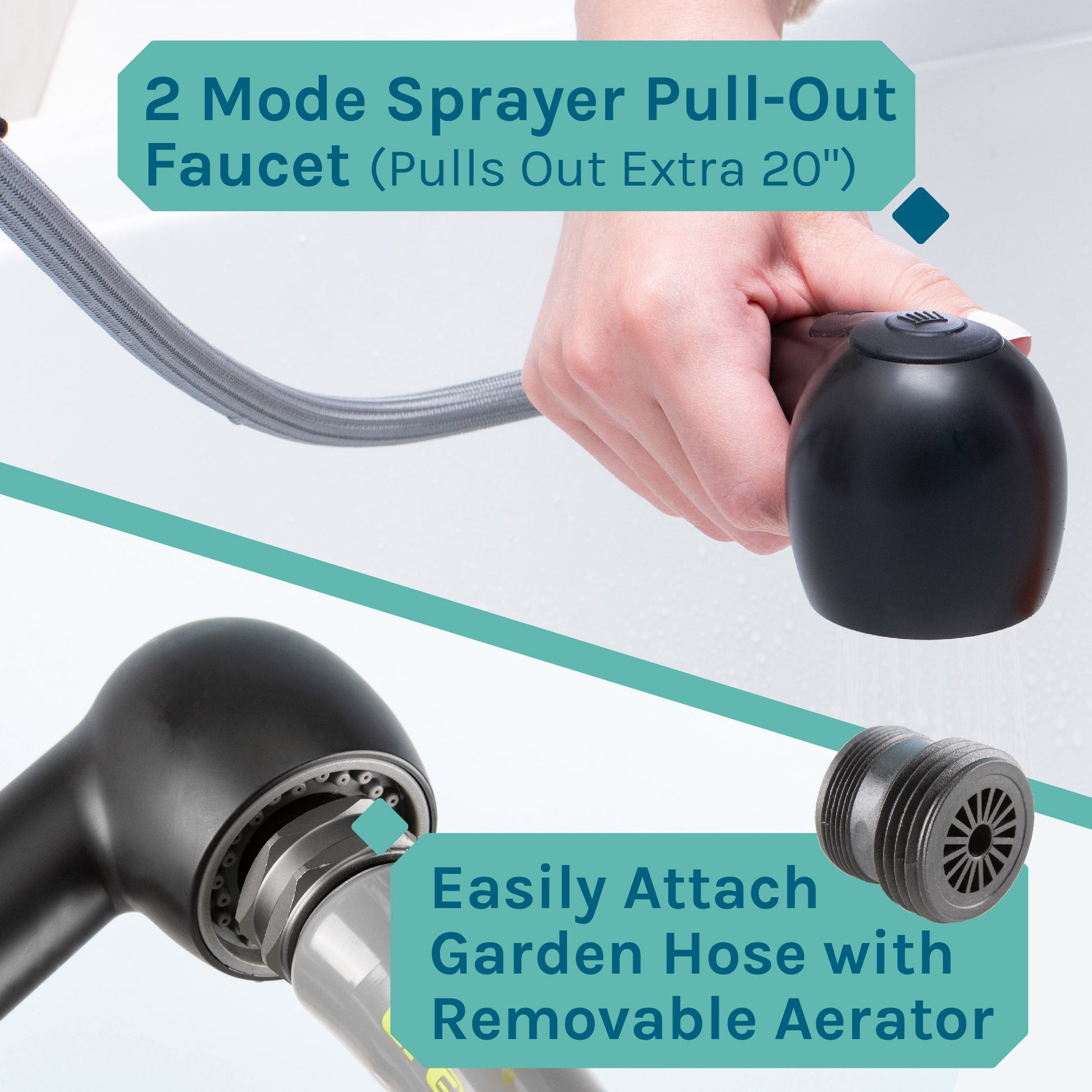 Tehila’s pull-out faucet was designed with you in mind. With the fully flexible pull-out sprayer hose, it’s easier than ever to wash dishes, soak clothes, or fill mop buckets. Dual handles ensure effortless temperature control, while clearly marked hot and cold symbols help you avoid confusion and make the faucet easy for kids to use. Choose from multiple color options for a stylish addition to any room, whether you’re replacing an existing faucet or setting up a new utility sink in your basement or garage.