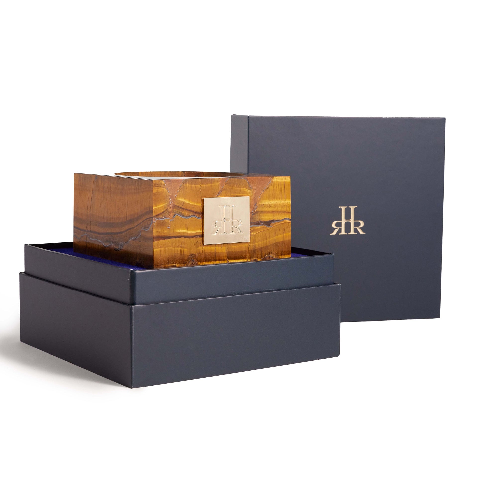 We cut this beautiful stone into a Tiger's Eye Stone Riser Tray from pre-selected chunks of stone ore to add to our collection of accessories, to display our candles and to also protect precious surfaces in your home.