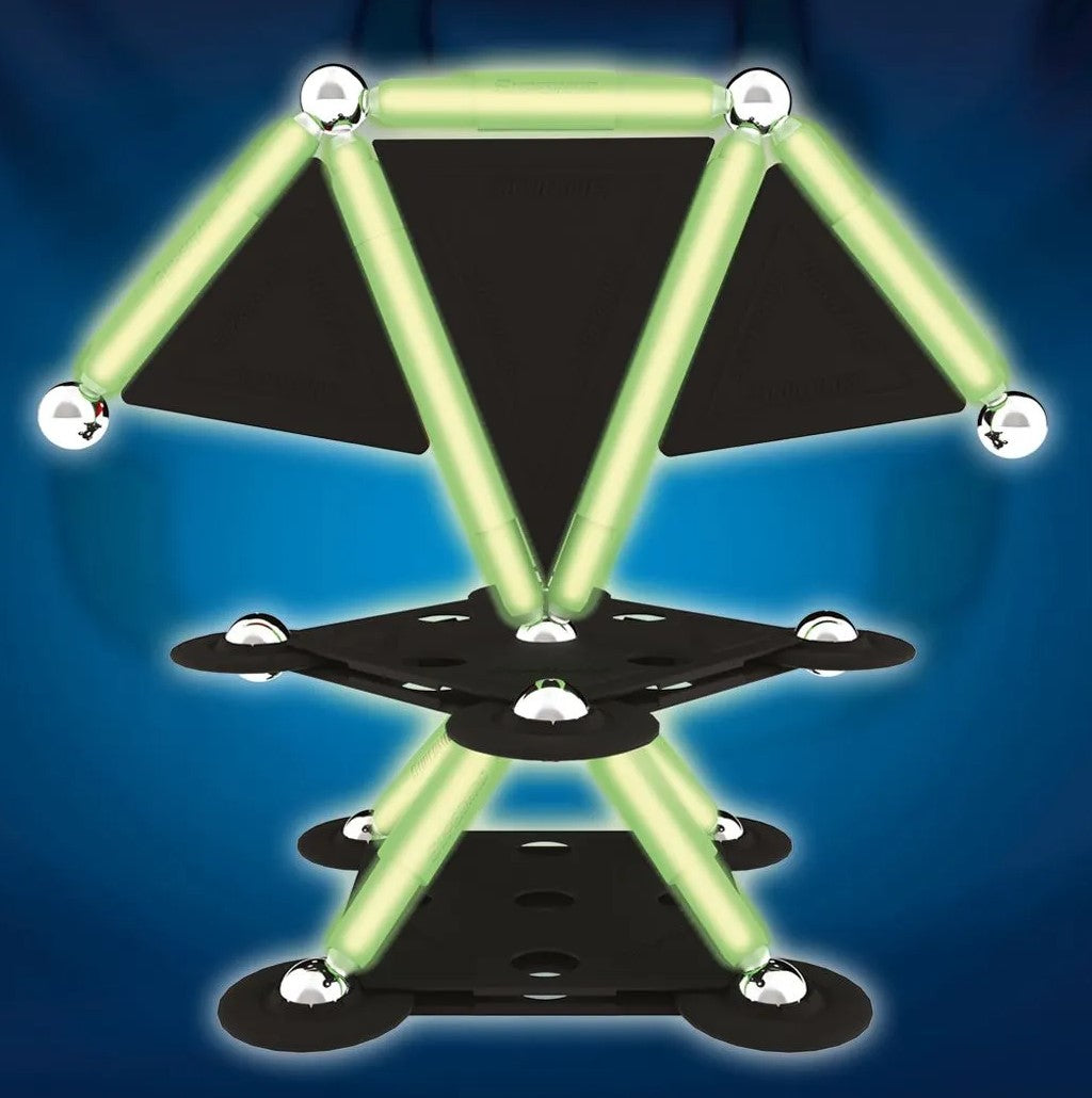 Toy Magnetic Building Set - Glow 45. STEM Europe-made toy. Magnetic 45-piece set.