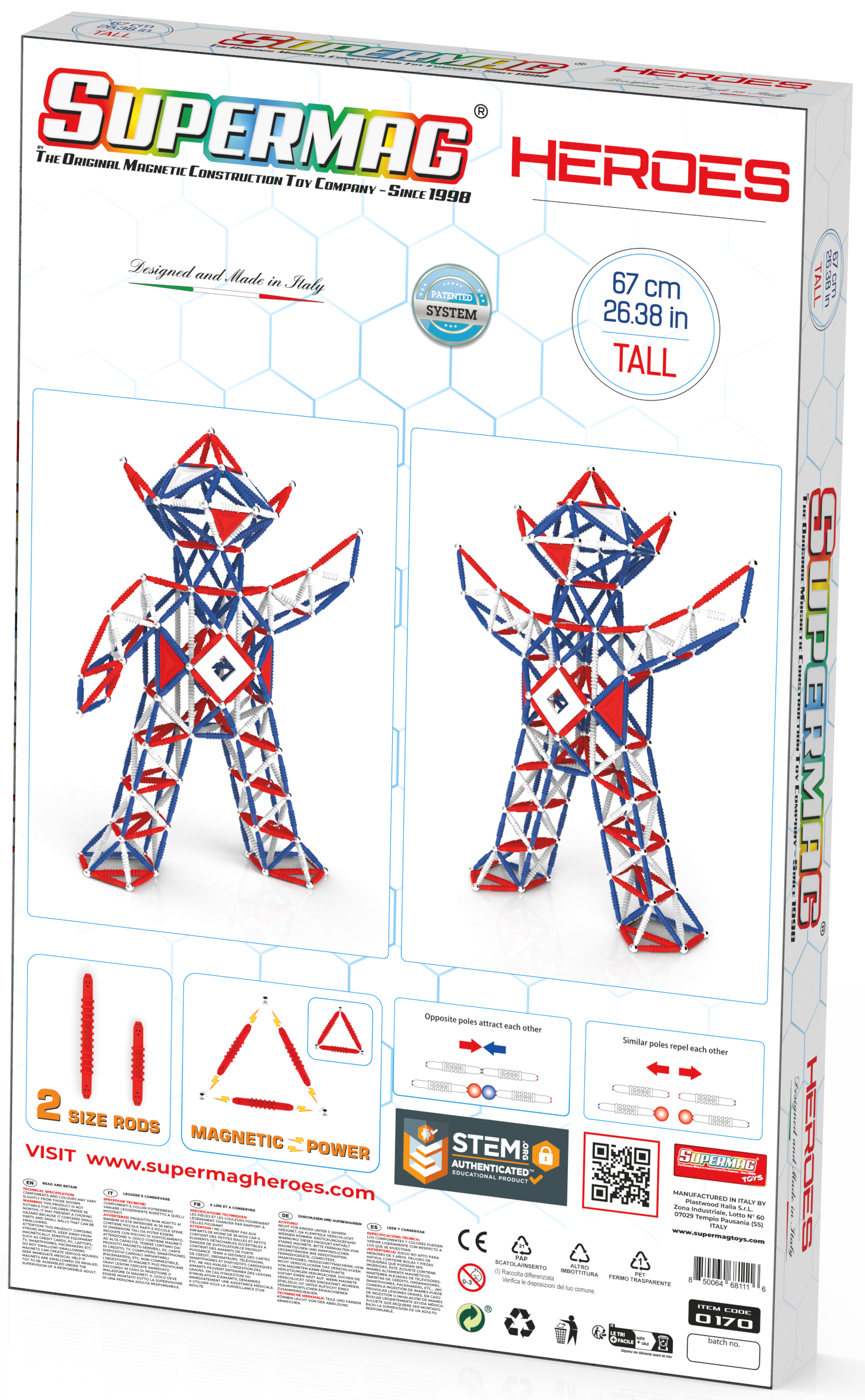 Toy Magnetic Building Set - Heroes Baby 460. STEM Europe-made toy. Magnetic 460-piece set.