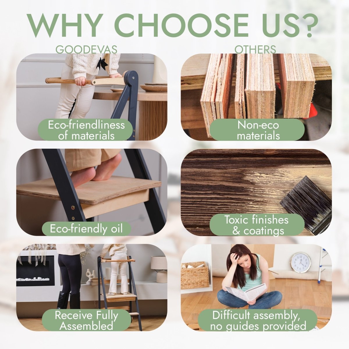 This toddler step stool helps little ones join in on daily tasks safely. A sturdy, multi-functional design of the learning tower gives children the opportunity to be part of family moments — whether helping in the kitchen, brushing their teeth, or washing their hands. This toddler kitchen stool makes learning a fun, interactive way to build confidence, independence, and essential life skills!