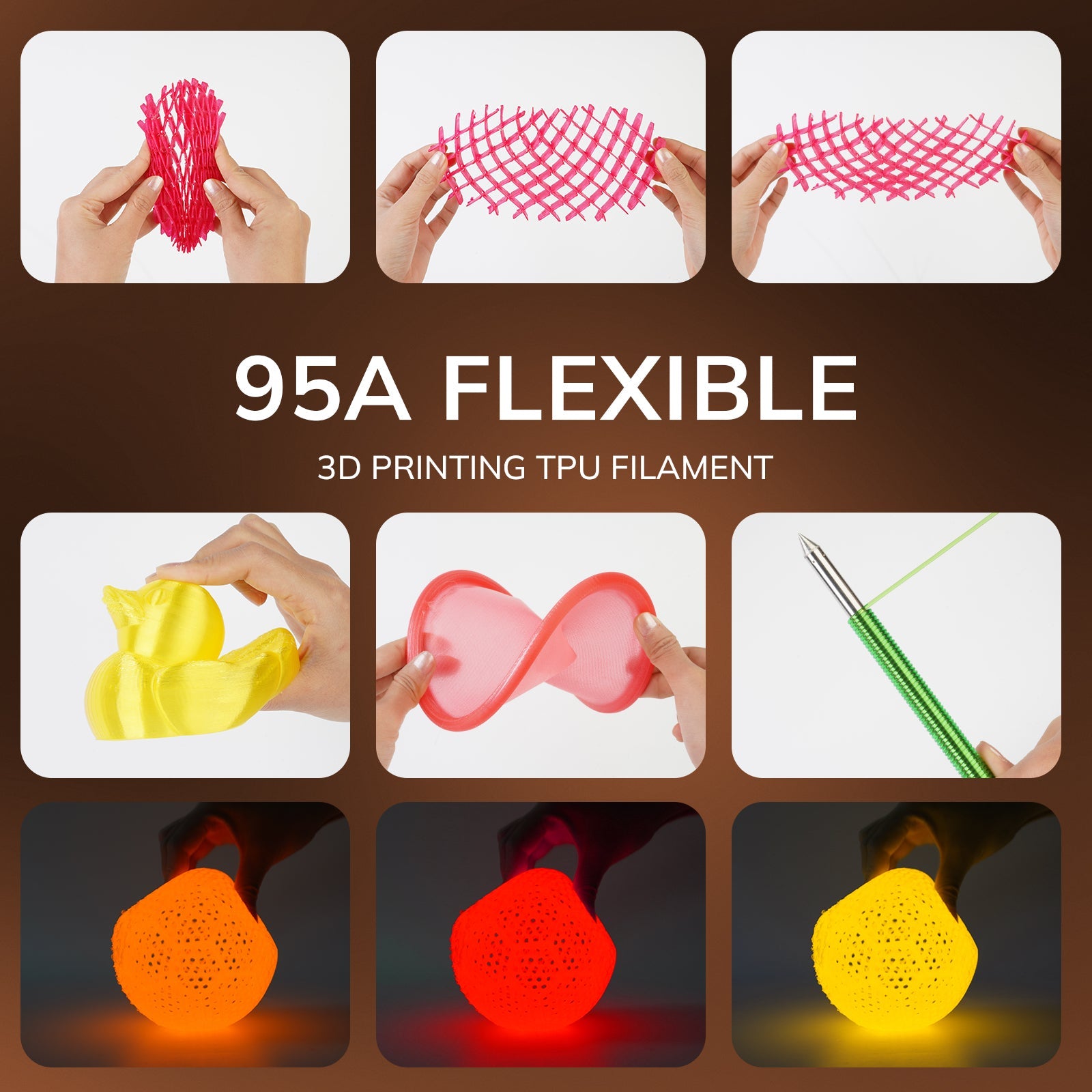 Glow in the Dark TPU Filament: Amolen's TPU filament glows in the dark with its original color, perfect for night-time designs.