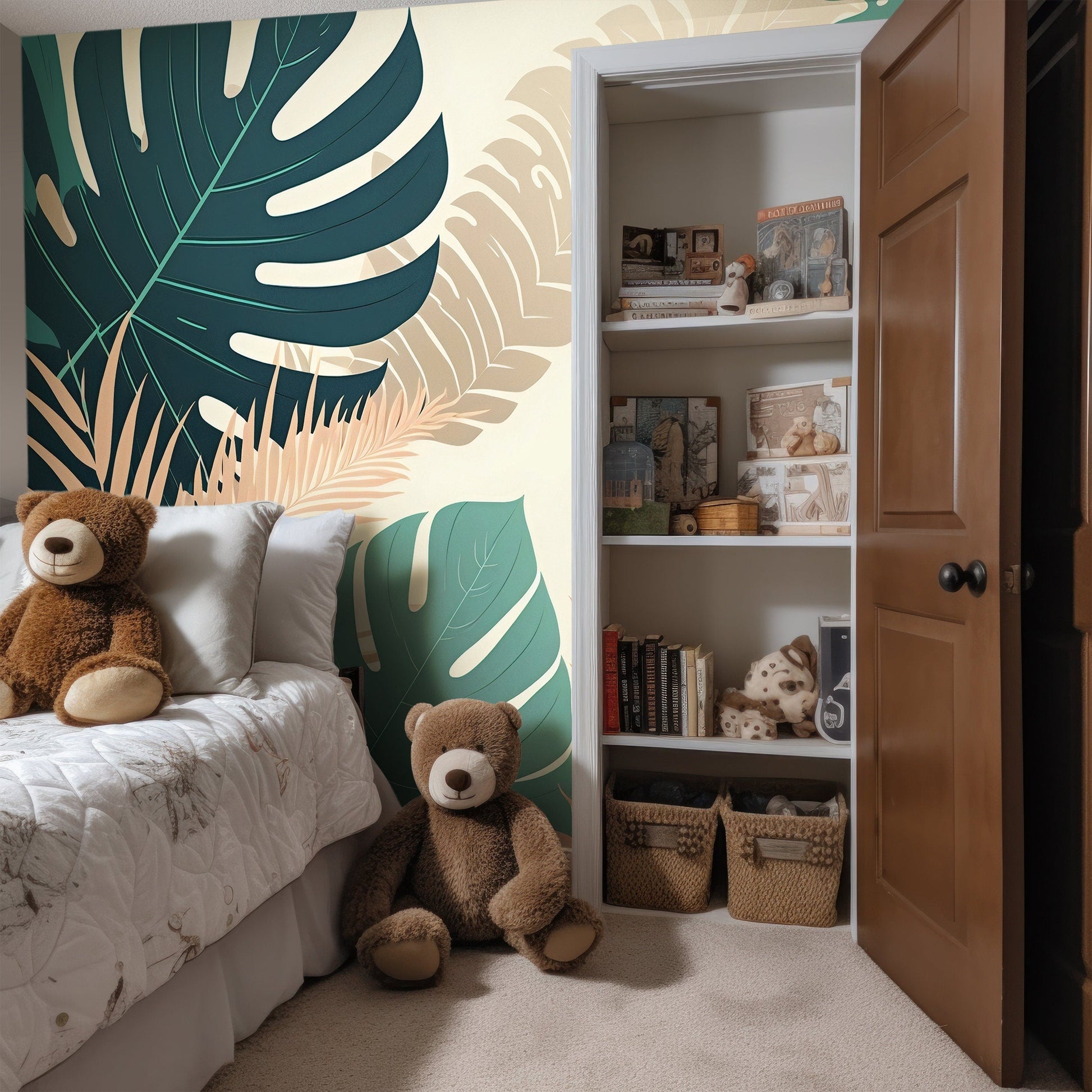 Tropical Monstera Leaf Mural | Boho Leaf Mural | Monstera Wallpaper | Removable and Repositionable Leaf Wallpaper | Tropical Boho Mural