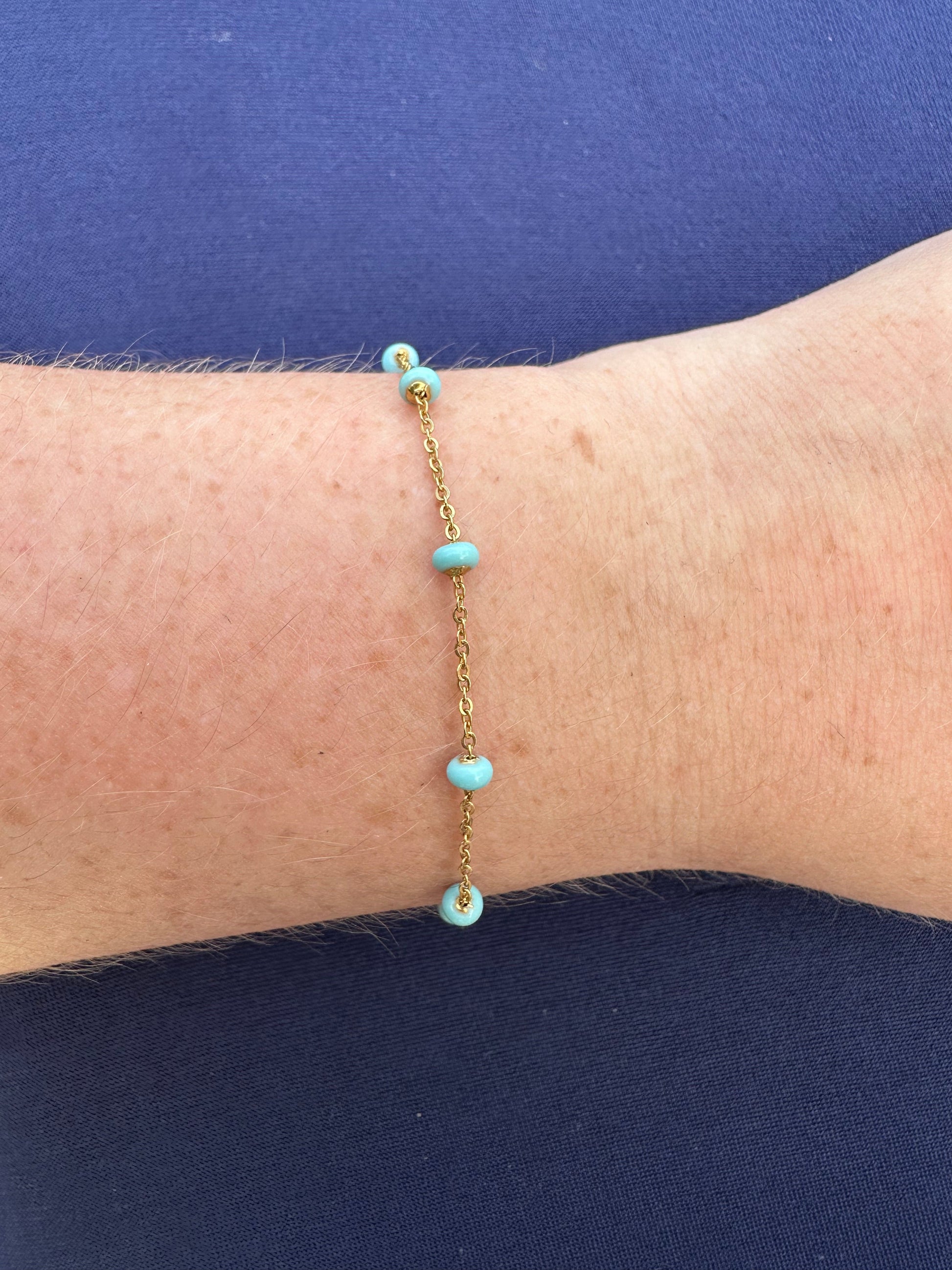 turqouise stones stationed on thin 18k gold stianless steel chain