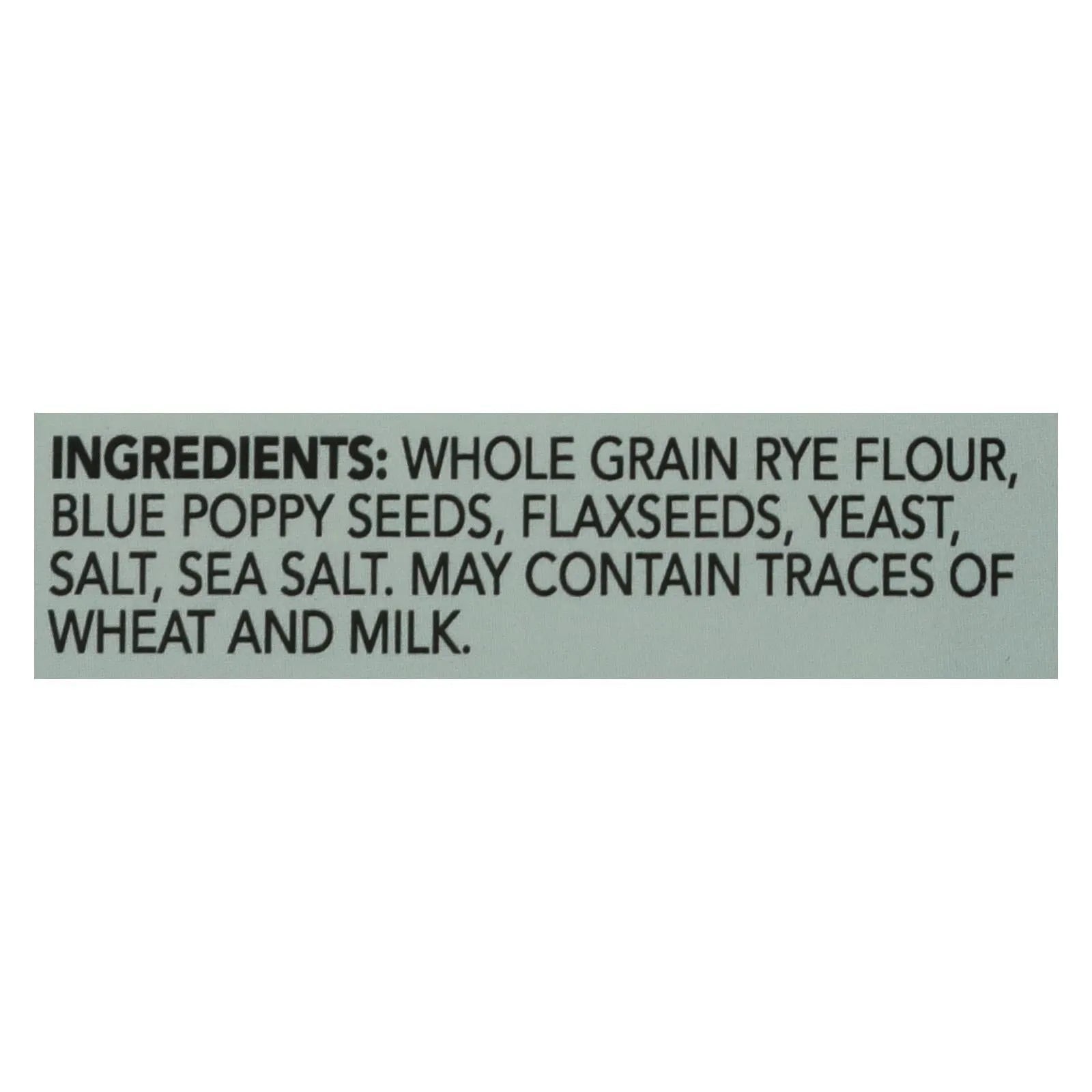 ingredients : whole grain rye flour;blue poppy seeds;flaxseeds;yeast;salt;sea salt