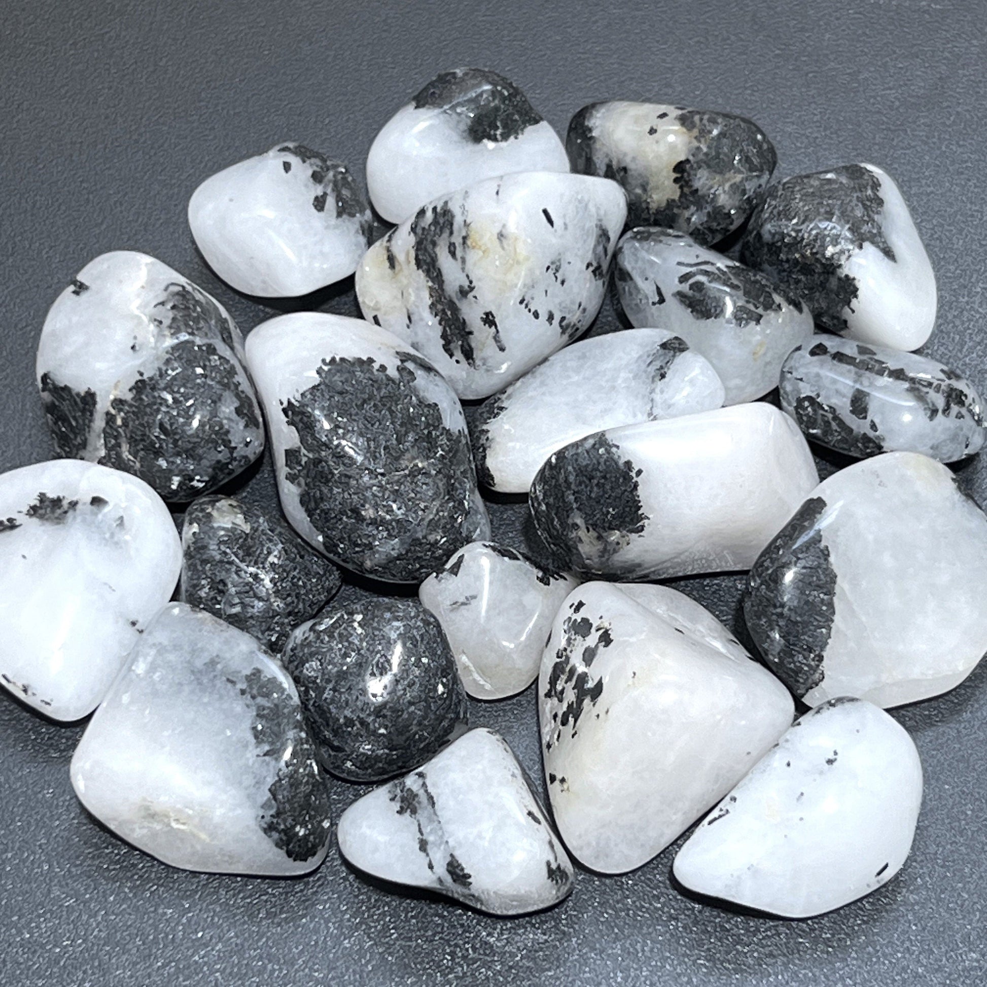 Tumbled Polished White Quartz with Black Tourmaline Stones