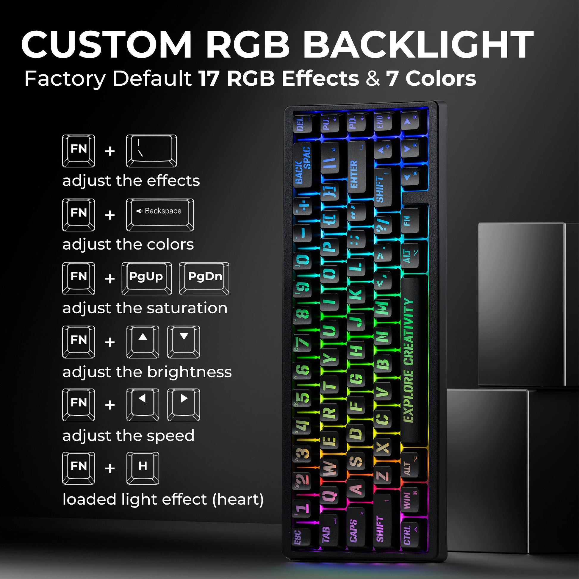 • Keyboard Layout: US ANSI 65% layout